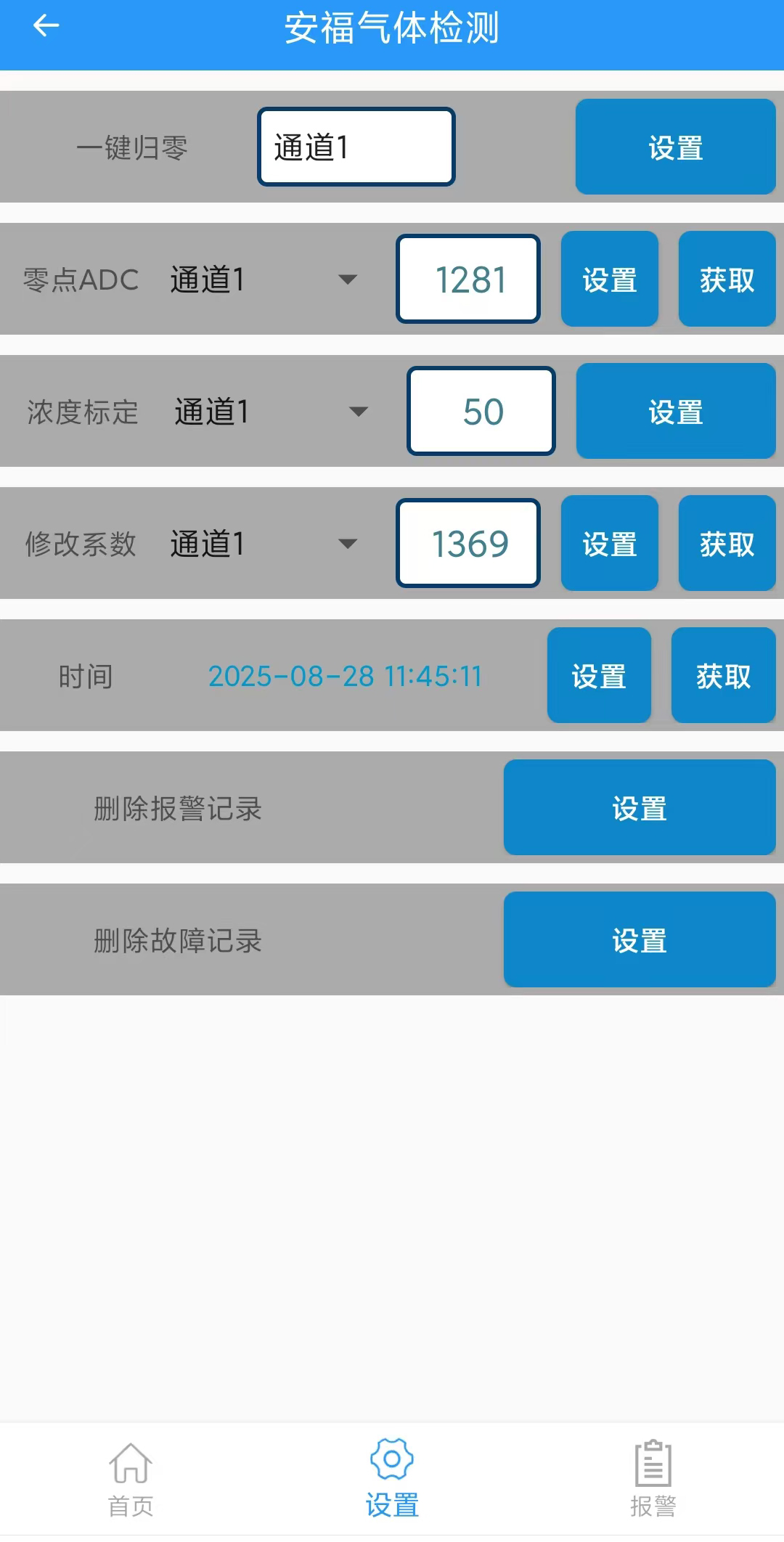 ● 低報、高報兩級報警均可設置,屏幕顯示報警類別