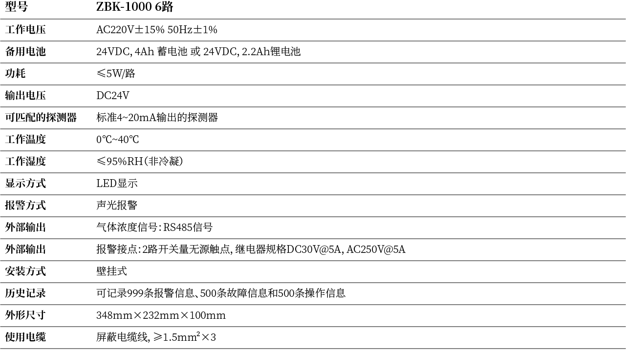 ZBK-1000氣體報警控制器與PLC、PC等及我公司4~20mA電流輸出的氣體探測器組成工業(yè)用氣體報警控制系統(tǒng)。氣體報警控制器通過RS485接口與PLC或PC通訊。