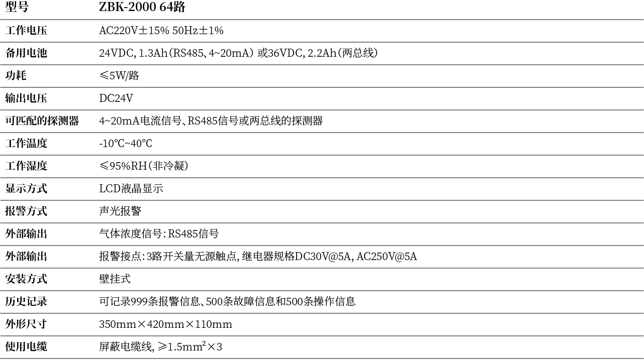 ·可與各種4~20mA信號輸出、RS485信號或兩總線的氣體探測器配合
